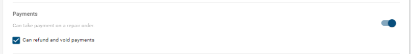Note: we need the payments toggle turned on, but we don’t need the “Can refund and void payments” checkbox checked: